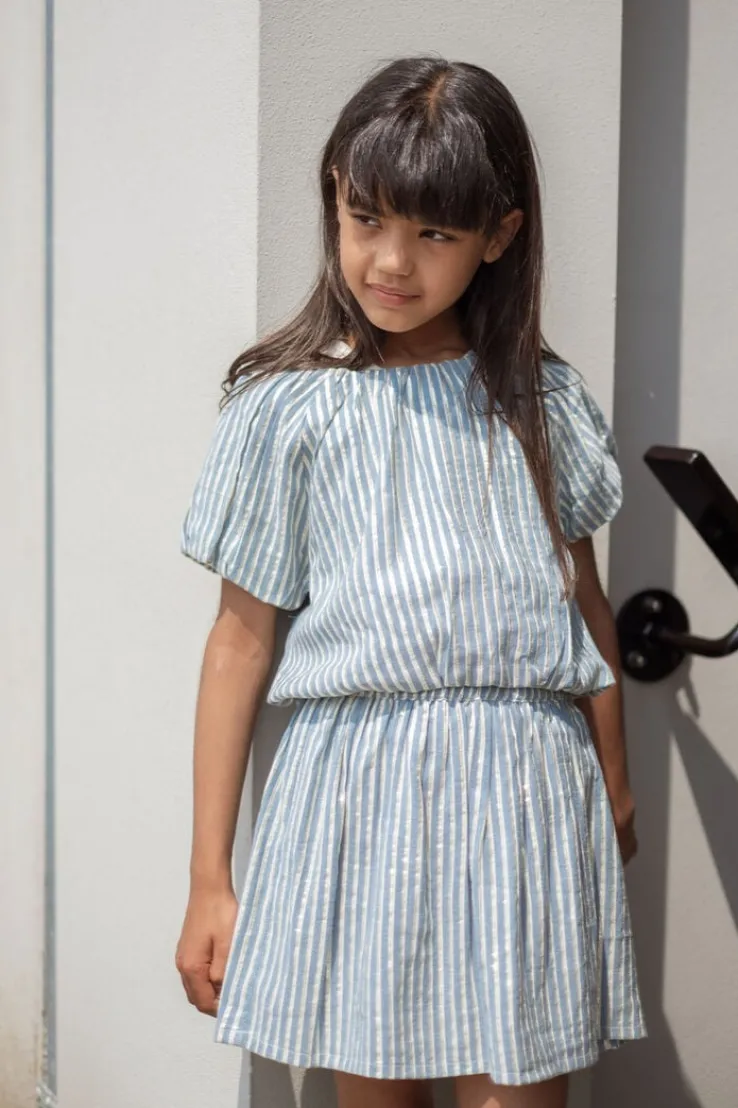 lichtblauwe neo noir maxi jurk nellie stripe dress