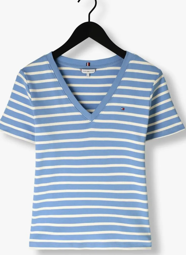 Met de NEW SLIM CODY V-NECK SS van TOMMY HILFIGER ben je helemaal on-trend. Dit lichtblauwe T-shirt met witte strepen is een must-have voor dames die houden van stijl en comfort. De slim fit zorgt voor een flatterende pasvorm, terwijl de V-hals een vrouwelijke touch geeft. Draag dit shirt tijdens een casual dagje uit of combineer het met een blazer voor een chique look. Het NEW SLIM CODY V-NECK SS T-shirt past perfect bij een jeans of een rok. Met dit veelzijdige item creëer je eindeloos veel outfits. Laat je creativiteit de vrije loop en straal in stijl!