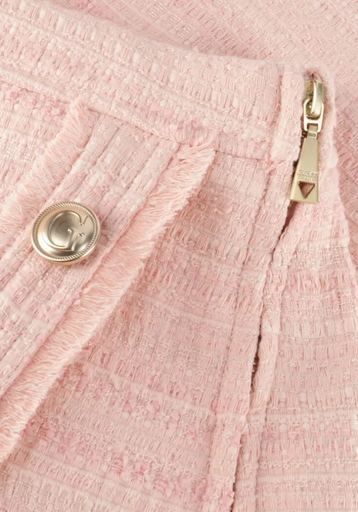 Voeg wat flair toe aan je garderobe met de TOSCA TWEED SKIRT van GUESS. Deze lichtroze minirok is perfect door zijn elegante spit met goudkleurige sierkopen, wat een elegante uitstraling geeft. De rok is perfect voor een dagje uit met vriendinnen of een romantische date night. Combineer het met een witte blouse en pumps voor een chique look, of draag het met een casual T-shirt en sneakers voor een meer relaxte uitstraling. Deze rok is een must-have voor elke fashion-forward dame die graag stijlvol voor de dag wil komen.