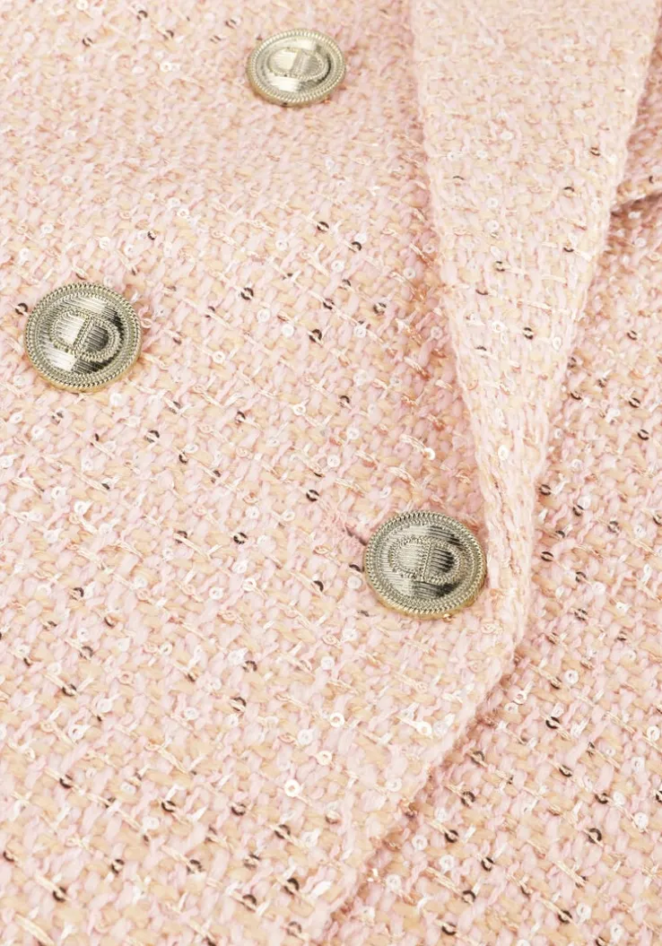 Met deze lichtroze blazer van TWINSET MILANO ben jij helemaal on-trend! De blazer heeft een vrouwelijke uitstraling en is perfect voor dames die graag stijlvol voor de dag willen komen. Met zijn gouden details en elegante pasvorm, is dit een must voor dames. Combineer deze blazer met een witte blouse en een jeans voor een casual-chique look. Of draag hem over een jurkje voor een elegante touch. Met deze blazer kun je zowel naar kantoor als naar een feestje. Laat je creativiteit de vrije loop en creëer de perfecte outfit voor elke gelegenheid. Met de 2341TP2424 blazer van TWINSET MILANO ben jij altijd fashionable!