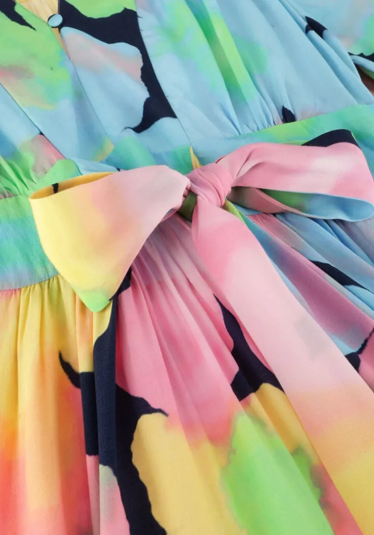 Laat je innerlijke bloesem tot bloei komen in de CHERRY BLOSSOM DRESS van POM AMSTERDAM. Deze prachtige meerkleurige maxi jurk is perfect voor een zomerse dag in de stad of een romantische avond uit. Combineer de jurk met een paar sandalen en een zonnehoed voor een casual look, of draag hem met hakken en statement sieraden voor een chique uitstraling. Deze jurk past goed bij een denim jack of een leren jasje voor een stoere touch. Laat jezelf stralen in deze eyecatcher!