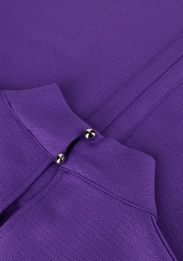 Laat je betoveren door de paarse jurk 4193 van CAROLINE BISS. Deze elegante jurk is perfect voor een avondje uit of een chique diner. De rijke paarse kleur straalt luxe uit en zorgt ervoor dat je opvalt. Combineer met een paar stijlvolle hakken en een subtiele clutch voor een complete look. De jurk past ook prachtig bij een leren jasje voor een stoere twist. Voel je zelfverzekerd en stijlvol in deze prachtige creatie.