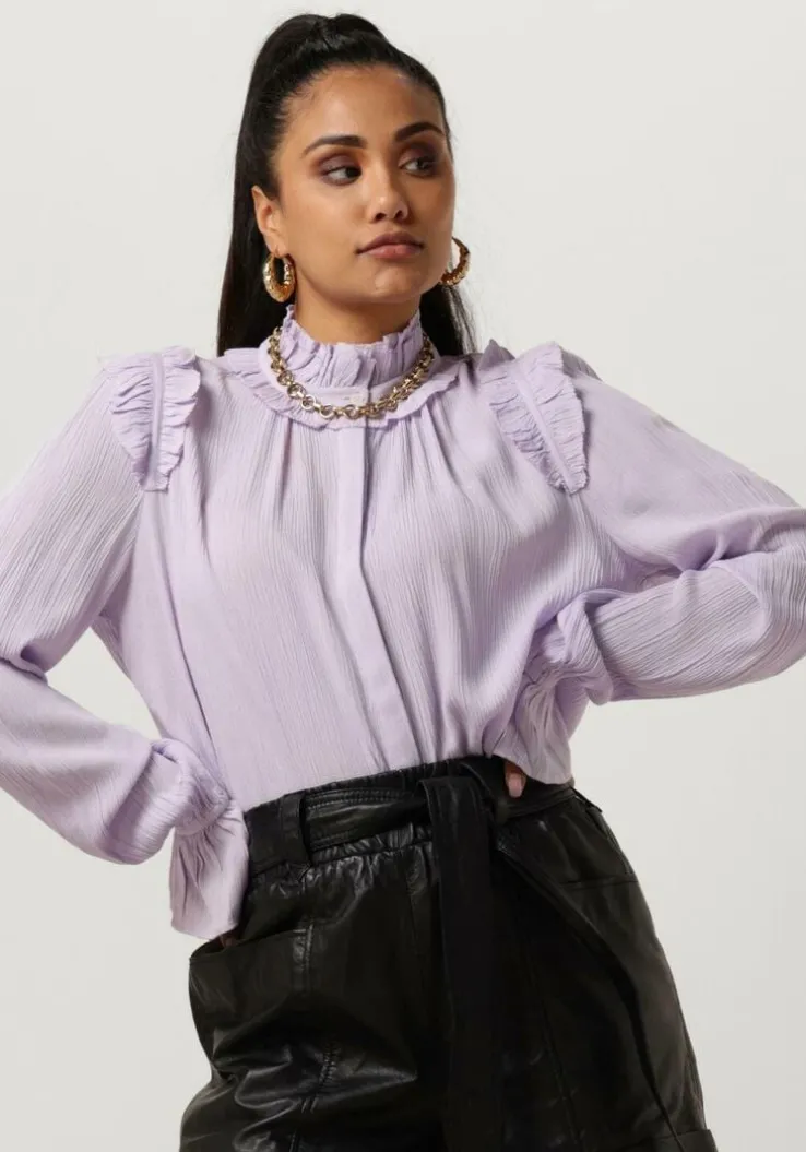 Ontdek de TOYAH blouse van IBANA, een must-have voor dames die houden van stijl en comfort. Deze lichtpaarse blouse is gemaakt van hoogwaardig viscose, waardoor het heerlijk zacht aanvoelt op de huid. De blouse heeft een mousseline uitstraling met ruffle randjes. Combineer het met een zwarte skinny jeans voor een trendy look, of draag het onder een blazer voor een chique uitstraling. Of je nu naar kantoor gaat of een avondje uit, met de TOYAH blouse ben je altijd fashionable. Laat je creativiteit de vrije loop en creëer eindeloze stijlvolle outfits!