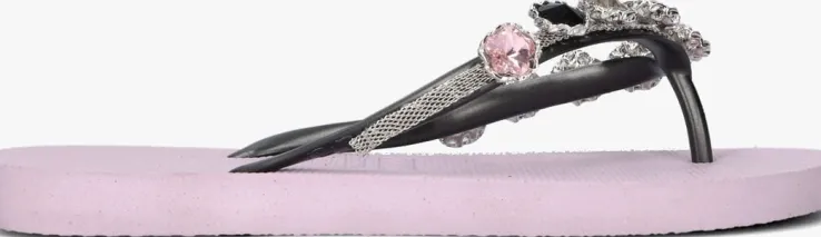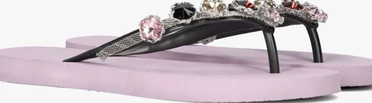 Deze lilakleurige ALEGRIA slipper uit de collectie vanUzurii Luxury Footwear is een ware eyecatcher om al die vredige strandjes en drukke boulevards mee af te struinen! De producten van dit Nederlandse modemerk zijn stuk voor stuk handgemaakt met speciale technieken en grote toewijding. Deze luxe slipper is uitgevoerd in hoogwaardig rubber en heeftprachtige strass-stenen in de vorm van bloemenop de zwarte rubberen wreefband.De schoenendoos waar deze mooie slippers in worden geleverd heeft een luxe afwerking enaan ze binnenzijde voorzien van een spiegel. Na gebruik kanje ‘m dus gebruiken als handig make-up of sieradenopbergdoos.