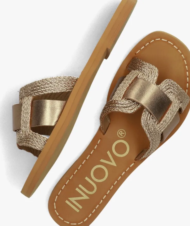 Stap in stijl met deze roségouden slippers van INUOVO. Het bovenwerk bestaat uit een brede band van leer en gevlochten touw. Met de rubberen zool zijn deze slippers perfect voor een dagje strand of een zomerse wandeling. De leren en leatherlook voering zorgt voor een luxe uitstraling en ultiem draagcomfort. Combineer deze slippers met een luchtige zomerjurk of een trendy jumpsuit voor een fashionable look.