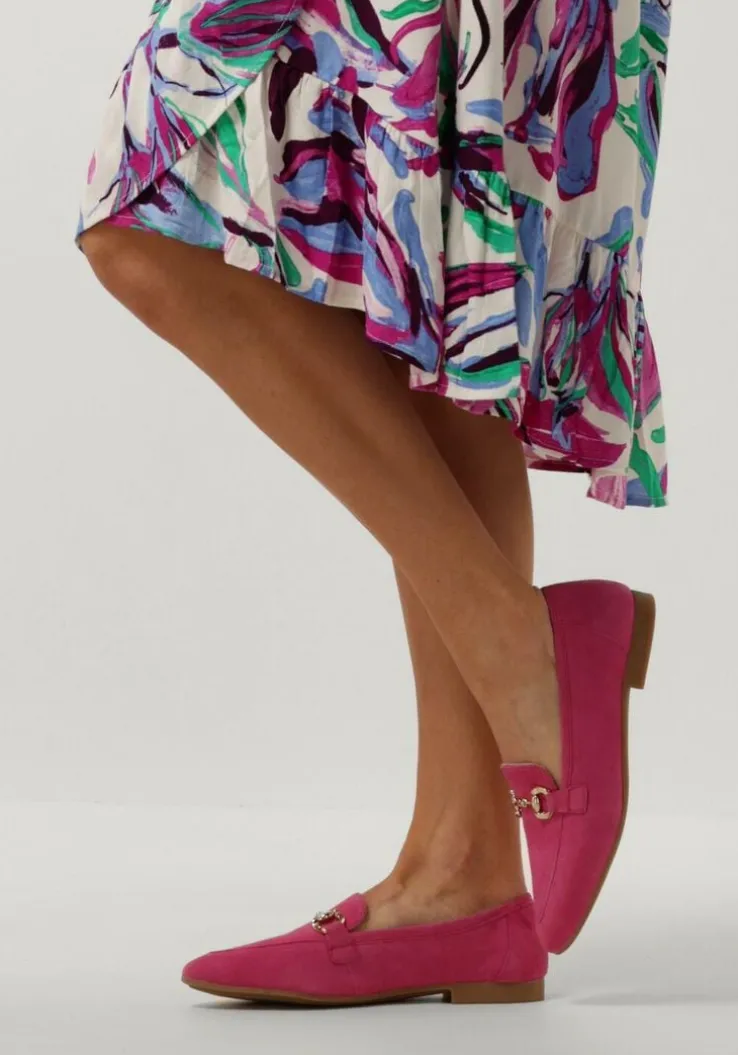 Stap in stijl met deze roze suéde loafers van AYANA. Dit model is gemaakt van roze suéde en heeft op de wreef een goudkleurige detail. De binnenkant bestaat uit leer en suéde en heeft een zacht vastvoetbed. Een leuk detail is de opstaande neusnaad en de spitse neus. De gladde zool is gemaakt van rubber en heeft een gelaagd blokhakje van 2 centimeter hoog dat de loafer extra elegant maakt. Combineer ‘m met je favoriete jeans of draag ze onder een leuk rokje.