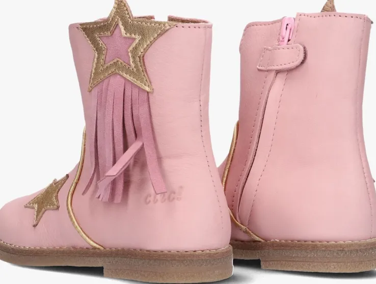 Maak kennis met de 20908 enkelboots van CLIC! Deze roze beauties zijn perfect voor meisjes die houden van stijl en comfort. Het bovenwerk bestaat uit roze leer met goudkleurige sterren en suède franjes. Trek ze aan voor een dagje shoppen met vriendinnen of een middagje in het park. De zachte roze kleur maakt ze ideaal om te combineren met een spijkerrokje en een vrolijk T-shirt, maar ze staan ook geweldig onder een jurkje. De stevige zool zorgt voor extra grip, zodat je zorgeloos kunt rondrennen. Met deze boots aan je voeten ben je altijd klaar voor avontuur!