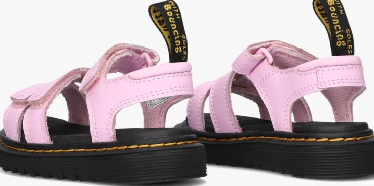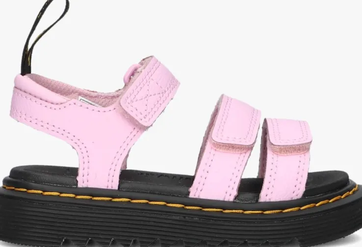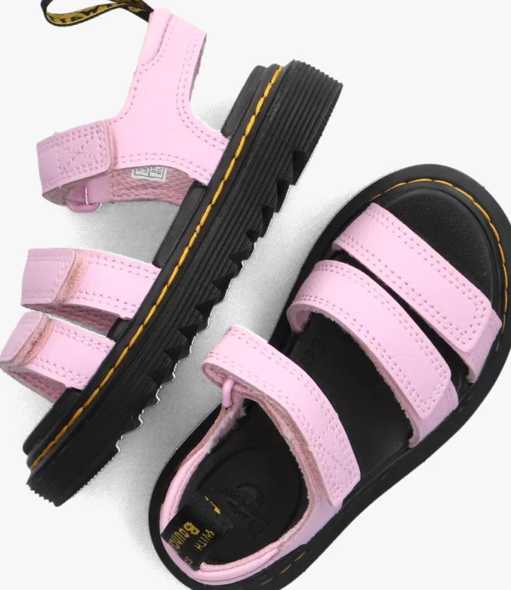 Een klassieke sandaalmet een karaktervolle, stoere Dr. Martens-stempel, dat is deze roze sandaalKLAIRE K.Dittoffe item is gemaakt van leer met dubbele stiksels op het bovenwerk.Het binnenwerk is van leatherlook met een rubberenSoftWair™-voetbed met dempend karakter. De sandaal heefteen aantalkenmerkende Dr. Martens accenten zoals de gegroefde zwarte zoolrand, de aantreklus op de hiel en de ultrastevige Goodyear-zoolrand met geel stiksel. Hij kangemakkelijk passend aan de voet worden gemaakt door de drie klittenbandsluitingen.Deze sandaal steunt op een dikke, maar superlichte PVC Ziggy-zool van 3,5centimeter dik met geribd profiel voor perfecte grip.