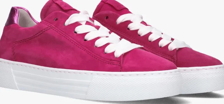 Deze opvallende sneaker is overal bij te combineren en is een perfecte toevoeging aan jou schoenengarderobe. Deze roze, lage sneaker 460.1 met lichtgewicht plateauzool en stoere accenten komt uit de Comfort collectie van het merk Gabor. Comfort schoenen hebben meer volume bij de tenen en bij de bal van de voet en bieden voor iedere voet de noodzakelijke ruimte. Dit model is uitgevoerd in hoogwaardig suède met dubbel stikselwerk voor extra stevigheid, heeft een opvallende brede veter en een metallic hielcap van leer. Het binnenwerk is van zacht bad textiel en het leren voetbed is uitneembaar.De sportieve witte rubberzool heeft extra stootranden rondom de neus en hiel en een gripvast loopzool voor extra stabiliteit bij iedere stap. Combineer dit model bij een basic outfit, zodat ze lekker opvallen!