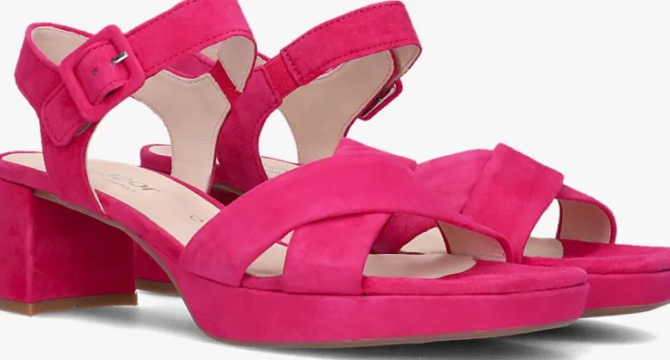 Loop vrolijk de zon tegemoet met deze fijne sandalen 953 uit de collectie van het merk Gabor.Dit roze model heeft twee gekruisde bandjes van suède over de voorvoet en het suède enkelbandje met klittenbandsluiting is fraai afgewerkt met een siergesp. Het binnenwerk is gevoerd met zacht leer. Opvallend is de suède afwerking aan het blokhakje van 6 centimeter voor een chic geheel. De aangename hakhoogte zorgt ervoor dat jij het heel de dag vol kunt houden op deze beauty’s en met de rubberen loopzool ervaar je veel grip.