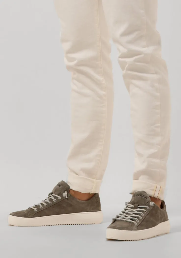 Stap in stijl met de BLACKSTONE ZG22 lage sneakers in de kleur taupe. Gemaakt van suède, zijn deze schoenen perfect voor elke casual gelegenheid. Opvallend is het logo op de tong, hiel en zoolrand. Combineer ze met een jeans en een basic t-shirt voor een relaxte look, of draag ze onder een chino en een overhemd voor een meer geklede uitstraling. Of je nu gaat voor een wandeling in het park of een drankje met vrienden, met deze sneakers ben je altijd on-trend.