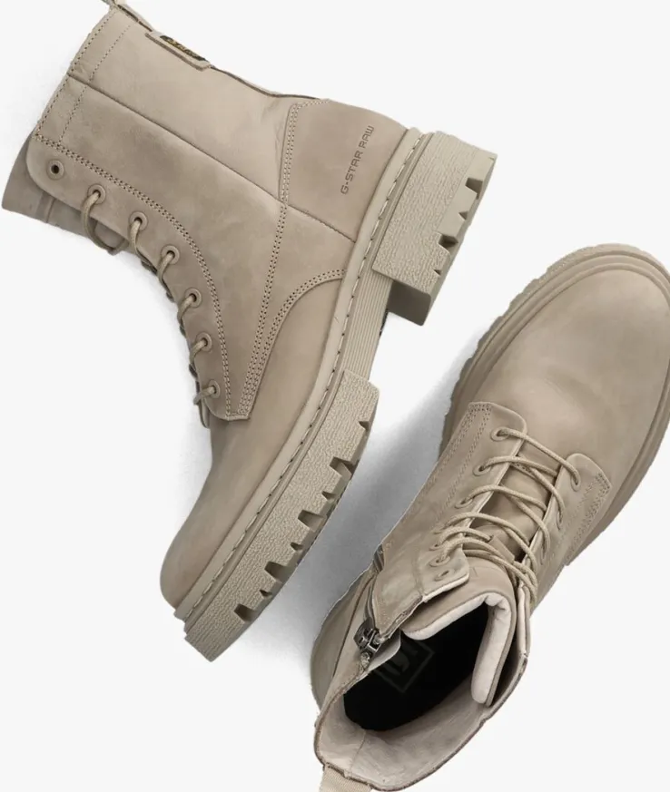 Deze veterboot KAFEY HGH LACE NUB W komt uit de collectie van het merk G-STAR RAW en is uitgevoerd in beige nubuckleer met een ronde veter van gewaxt katoen en een handige ritssluiting aan de binnenbeen zijde om ‘m gemakkelijk aan-en uit te trekken. Opvallend is de chunky zool met reliëf belijning van 3 centimeter hoog onder de voorvoet en 5 centimeter onder de hiel. Het binnenwerk is gemaakt van leer en de schoen heeft een uitneembaar voetbed. Door het grove profiel in de loopzool ervaar je veel grip en stabiliteit. Geef je outfit een stoere touch en draag deze boots onder een jurk of rok. Of creëer een casual outfit en combineer dit paar met een jeans. Opties te over!