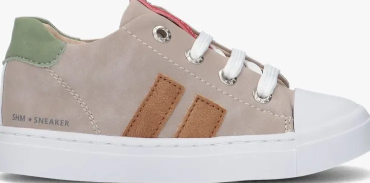 SHOESME is hét merk die weet waar je kinderen mee kunt verrassen. Dat doen ze door hun vrolijke kleurtjes, printjes en door de laatste trends te volgen. Maar zij weten ook precies waar je de ouders blij mee maakt. En dat is natuurlijk een goed voetbed, een goede ondersteuning van de voet én heel belangrijk, dat de schoentjes tegen een stootje kunnen. Deze leuke lage sneaker SH23S004 is zo’n voorbeeld hiervan! De buitenkant is gemaakt van stevig taupekleurig leer met bruine strepen aan de zijkant van de schoen, een groene hielcap en een rood merklabel op de tong.Naast de vetersluiting is dit model voorzien van een ritssluiting waardoor je veel gemak ervaart bij het aan- en uittrekken en niet iedere keer de veters hoeft te strikken. De neus is voorzien vaneen witte rubberen stootneus. Zo blijven de schoentjes langer mooi, ook als ze nog vaak op de grond spelen. Het binnenwerk is uitgevoerd in leer met een geperforeerd en uitneembaar voetbedvoor een optimale ventilatie.De rubberen zool met gripvast profiel is stevig en tegelijkertijd ook soepel zodat de voet goed kan afwikkelen.
