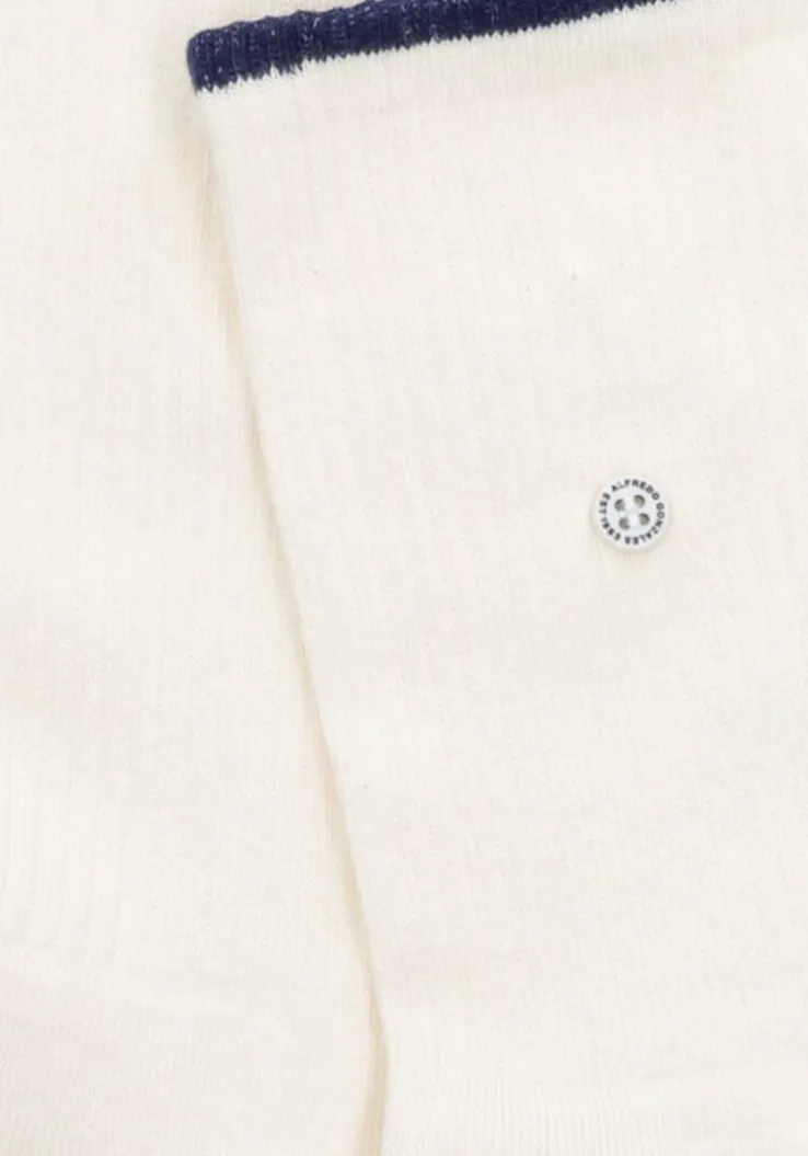 Kwaliteit, stijl enauthenticiteit:dat zijn de kernwaarden van het merk AlfredoGonzales. Als je naar de mooie producten uit de collectie kijkt, zie je dat er geen enkele moeite bespaard is gebleven bij het maken van luxe sokken. Deze crèmekleurige sok ATHLETIC PLAIN met donkerblauwe rand is gemaakt van 78% katoen, 18% nylon en 4% lycra. Daarnaast is elk paar AlfredoGonzales-sokken voorzien van een trademarkbutton, waardoor ze herkenbaar zijn én een leuk detail hebben als toevoeging aan iedere outfit.