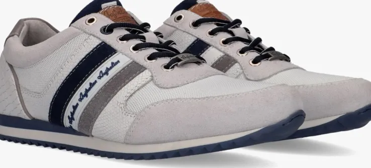 Casual bruine sneakers CAMARO van het merk AUSTRALIAN. Deze lagesneaker is uitgevoerd in wit leer enheeft een binnenvoering van textiel en leer met een uitneembaar, dempend voetbed. Deenkelkraag van suède is opgevuld en biedt ondersteuning en comfort. Opvallende details is het gestanste print op de neus, de stevige hielkap met snakeprint, de drie lijnen op de zijkant van nubuck, suède en rubber met merkreliëf en de tong van suède met een leren merklabel. De rubberen zoolrand heeft een donkerblauwe accentstreep en een grof ribbeltjes profiel voor een goede grip.