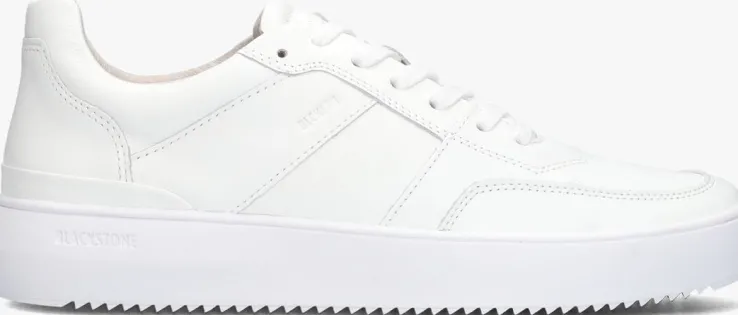 Stap in stijl met deze witte lage sneakers van BLACKSTONE. Het bovenwerk bestaat uit wit leer met diverse overlays en heeft subtiele merkemblemen op de tong, zijkant en zoolrand. Het uitneembare voetbed zorgt voor extra comfort, terwijl de rubberen zool zorgt voor grip en stabiliteit. Combineer ze met een jeans en een T-shirt voor een relaxte uitstraling. Of draag ze onder een chino en een overhemd voor een meer geklede look. Met deze sneakers ben je altijd on-trend en klaar voor elke gelegenheid.