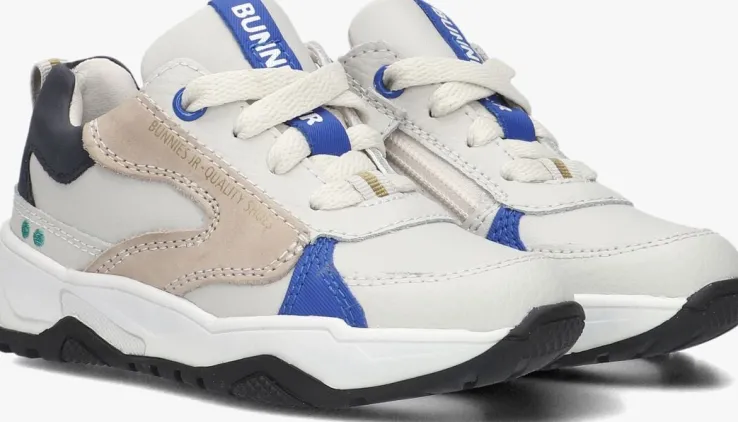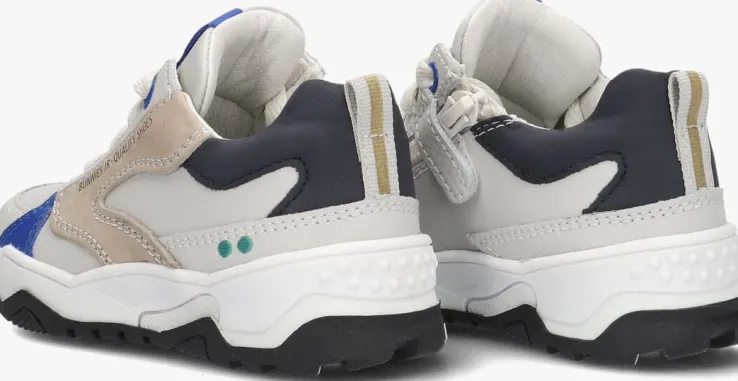 Deze lage sneaker CISKE CHUNKY komt uit de collectie van het merk BUNNIES JR. Dit bijzonder flexibele schoentje heeft een leren bovenwerk met diverse panelen van leer in de kleur beige, blauw en zwart. Dankzij de rubberen neus is het suède extra goed beschermd tegen beschadigingen. Het binnenwerk is van leer en met het uitneembare voetbed kun je goed zien of je kindje de juiste maat draagt. De zool is gemaakt van rubber en heeft een stootrand op de neus en een gripvast profiel.