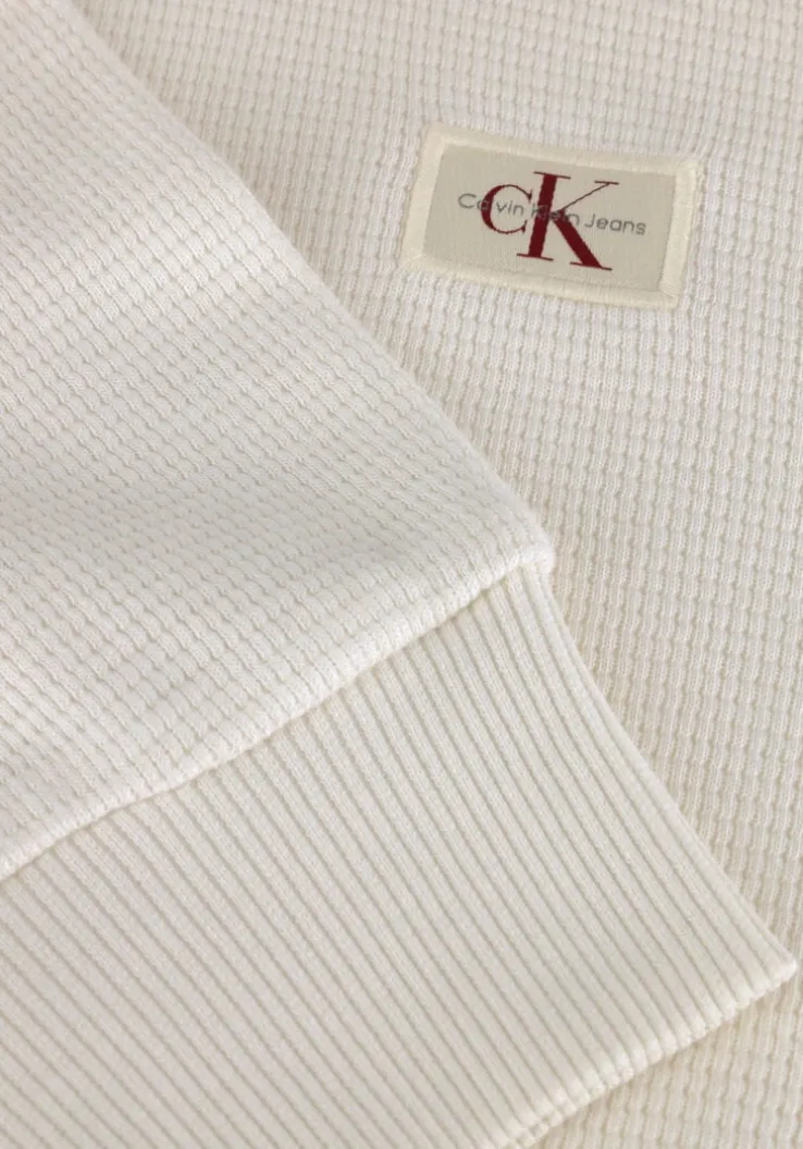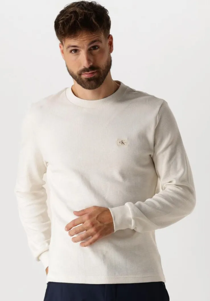 Ontdek de ultieme combinatie van comfort en stijl met de WOVEN LABEL WAFFLE LS TEE van Calvin Klein. Deze witte trui is perfect voor heren die houden van een tijdloze look. Ideaal voor een ontspannen weekendwandeling of een casual dag op kantoor. De subtiele wafelstructuur geeft een moderne twist aan je outfit. Combineer met een donkere jeans voor een moeiteloze, stijlvolle uitstraling. Of draag ‘m onder een blazer voor een verfijnde, maar toch relaxte look. Deze trui is een veelzijdige must-have die naadloos aansluit bij elke garderobe. Geniet van de luxe en eenvoud die Calvin Klein biedt.