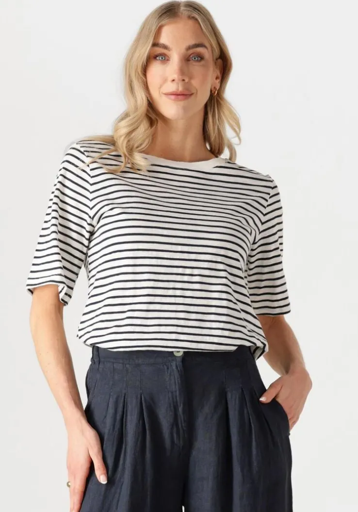 Ontdek de veelzijdigheid van de CC HEART SILLA STRIPE top. Deze zwart/wit gestreepte top is perfect voor dames die houden van een casual en stijlvolle look. De buitenkant van katoen voelt heerlijk zacht aan, terwijl de katoenen binnenkant zorgt voor extra comfort. Ideaal voor een ontspannen dagje shoppen of een gezellige lunch met vriendinnen. Combineer deze top moeiteloos met een lichte jeans of een elegante witte rok voor een frisse, zomerse uitstraling. De subtiele strepen geven je outfit net dat beetje extra flair. Voeg deze must-have toe aan je garderobe en geniet van de perfecte mix van stijl en comfort.