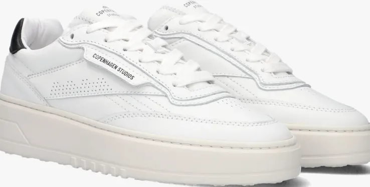 Stap stijlvol de dag in met de CPH89 lage sneakers van COPENHAGEN STUDIOS. Deze witte pareltjes zijn gemaakt van hoogwaardig leer gedragen leerlook met zwarte accenten. De sneaker heeft een ronde neus, perforaties en opvallende merkreliëf op de tong en zijkant. De binnenkant combineert leer en textiel voor ultiem comfort. Perfect voor een dagje shoppen of een ontspannen wandeling in het park. De rubberen zool zorgt voor een stevige grip. Combineer ze moeiteloos met een casual jeans of een zomerse jurk. De vetersluiting geeft een klassieke touch aan deze moderne sneakers. Voeg een vleugje elegantie toe aan je dagelijkse outfit met deze veelzijdige sneakers.