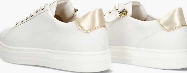 Stap in stijl met de HASSIA BARI lage sneakers voor dames. Deze witte sneakers zijn gemaakt van hoogwaardig leer, zowel aan de binnen- als buitenkant. Opvallend zijn de goudkleurige accenten, zoals de hielcap, de veters en de veterringen. De rubberen zool zorgt voor een goede grip tijdens alledaagse activiteiten zoals winkelen of een wandeling maken. Combineer de BARI sneakers met een jeans en een casual top voor een moeiteloze en modieuze look. Met deze sneakers ben je klaar voor elke gelegenheid!