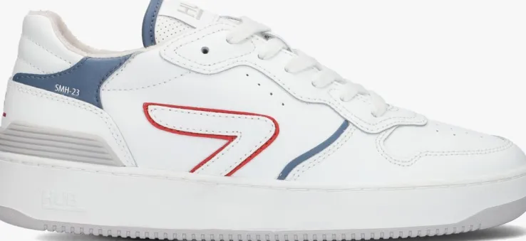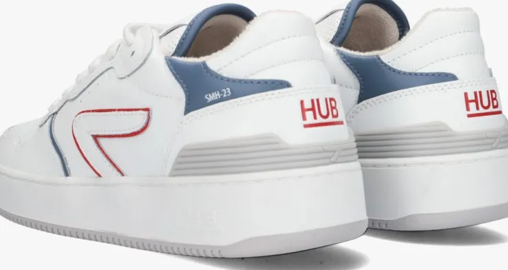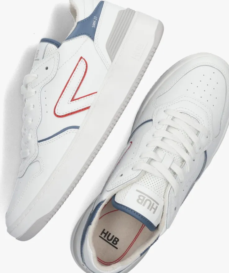 De SMASH HEREN sneakeruit de collectie van het merk HUB isop basketball-schoenen geïnspireerd en heeft een uniekontwerp en een hoog comfort. Deze witte sneaker heeft een bovenwerk van leer met opvallende accenten zoals de grove perforaties op de neus en zijkant voor een goed ademend vermogen en een witte rubberen kuipzool. Deze zool is niet alleen heel flexibel maar ook ultralicht van gewicht envoorzien van een reliëf merkopdruk. De sneaker heeft unieke details zoals de blauwe accenten, de grijze hielstabilisator, de perforaties op de tong en de merkopdrukken op de tong, hiel en zijkant. Het binnenwerk is gemaakt van vocht absorberend badstof en heeft een uitneembare voetbed met gelvulling zorgt gegarandeerd voor het gevoel dat je op kussentjes loopt. Daarnaast heeft het voetbed het zogenaamde Air Flow-ventilatiesysteem zodat jouw voeten altijd droog en fris blijven. En uiteraard zorgt het grijze profiel in de zool voor een uitstekende grip. Wordt dit jouw nieuwe favoriete sneaker?