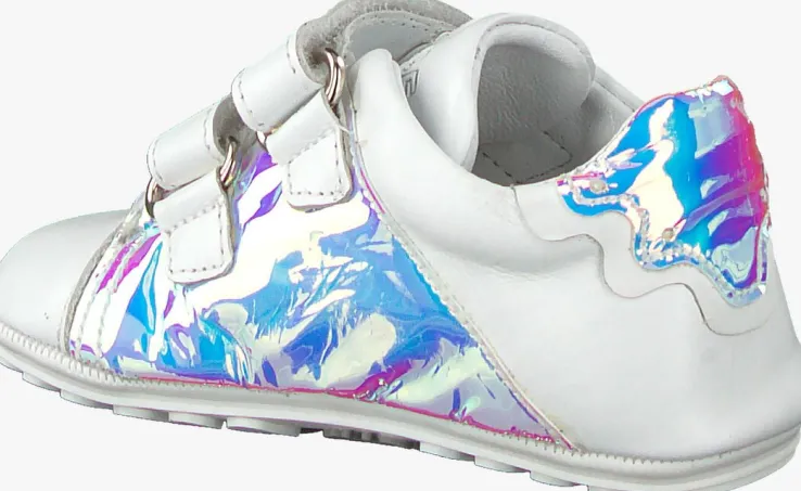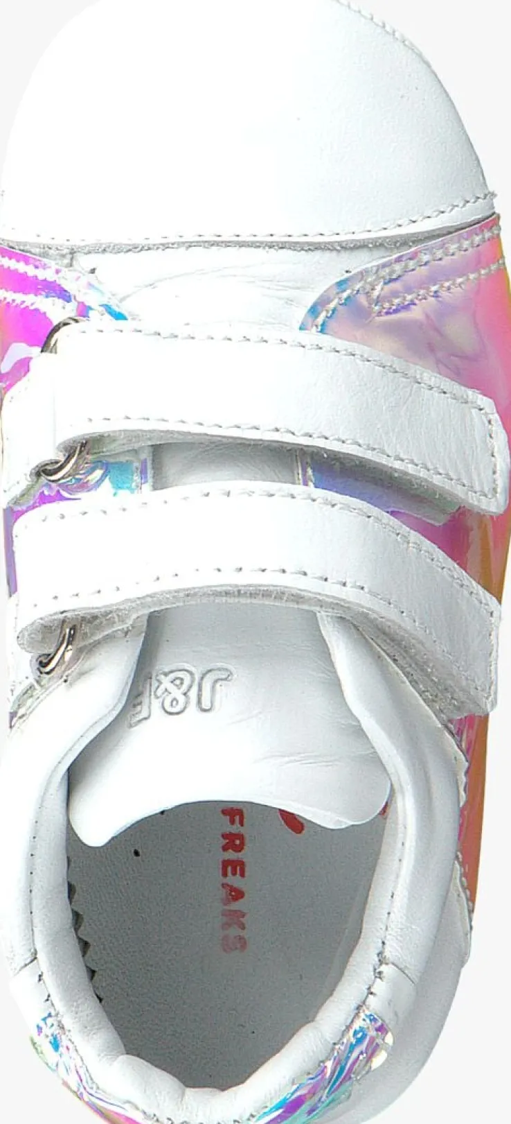 Ook de kleinste lopen er helemaal hip en trendy bij met deze lieve babyschoentjes 20006 van het merk Jochie & Freaks. De buitenkant is gemaakt van wit leer en heeft een opvallende look dankzij de holografische zijpanden en het golvende hielstuk. Het binnenwerk is leer gevoerd met een vast voetbed en je trekt ‘m gemakkelijk aan en uit dankzij de handige klittenbandsluiting. Het flexibele rubberen zooltje buigt fijn mee met de voet en is voorzien van een gripvast profiel zodat de eerste stapjes stevig gezet kunnen worden.
