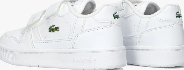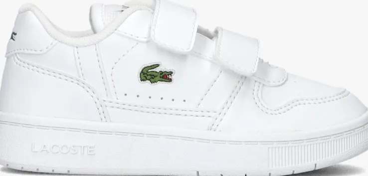 De nieuwe trend van dit moment; retro sneakers. Deze witte lage sneaker T-CLIP van het stijlvolle en luxe merk Lacoste gaat mee met deze trend en maakt jouw schoenendromen waar. Dit witte model is uitgevoerd in een combinatie van leer en lederlook en heeft een witte rubberen met gripvast profiel. De zijkanten en voorkant zijn voorzien van perforaties voor een goed ademend vermogen van de voet. Andere opvallende details zijn de klittenband sluitng, het merkembleem op de tong, een geborduurd krokodillenlogo op de zijkant en een merkopdruk op de hielcap. Dit coole model is gemakkelijk te combineren onder een stoere jeans.