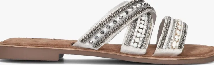 Bij het zien van deze mooie slippers krijg je toch spontaan de zomer in je bol? Deze witte slipper 75.474 van het merk LAZAMANIis uniek, handgemaakt en heeft drie leren banden die chic zijn afgewerkt met zomerse kraaltjes en krassteentjes in de kleuren zilver, grijs en wit, waarvan er twee gekruist over elkaar heen lopen. Het voetbed is gemaakt van bruin suède, heeft een fijne demping en voelt heerlijk zacht aan. Laat de zon maar schijnen!