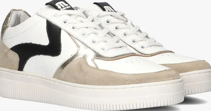 Van het Nederlandse merk MARUTI is deze sportieve sneakerMOMO. Dit eigentijdse merk staat voorschoenen met cleane designs en bijzondere kwaliteit. IederpaarMARUTI’sis uniek doorde natuurlijke materialen en experimentele wassingen! Deze lage sneaker is gemaakt van witstructuurleer en heeft speelse panelen van beige suède en metallic gouden accenten. Op de neus bevinden zich ademende perforaties en dankzij de gewatteerde schacht ervaar je een goede steun bij iedere stap. Het binnenwerk is uitgevoerd in leer en heeft een uitneembaar voetbed. De flexibele en lichtgewicht platformzoolis bijna 3 centimeterdik onder de voorvoet en loopt naar achteren toe op tot bijna 4 centimeter hakhoogte. Het speelse profiel van de loopzool zorgt voor voldoende grip bij iedere wandeling en de sneakers zijn supermakkelijk te combineren. Draag ze bijvoorbeeld onder een jeans of jurk voor een sportieve, casual look.