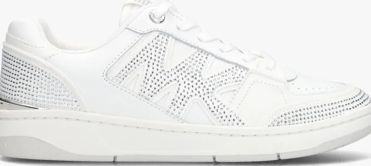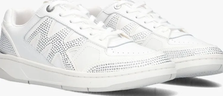 Stap in stijl met de REBEL LACE UP lage sneakers van MICHAEL KORS. Deze witte sneakers zijn gemaakt van leer in combinatie met leatherlook. Opvallend zijn de zilverkleurige strassteentjes rondom de schoen. De binnenvoering is gemaakt van textiel en heeft een vast voetbed. De rubberenzool biedt grip en stabiliteit. Draag deze sneakers met een jeans en een casual t-shirt voor een trendy look, of combineer ze met een zomerjurkje voor een sportieve twist. Perfect voor een dagje shoppen of een gezellige lunchdate met vriendinnen.