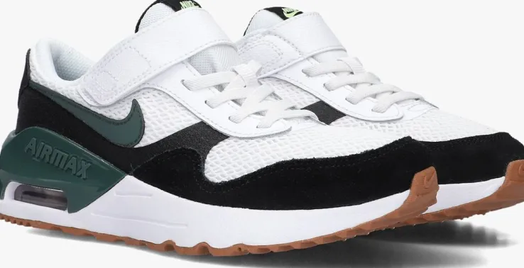 Stap in stijl met de NIKE AIR MAX SYSTM lage sneakers in het wit. Deze trendy schoenen zijn perfect voor meiden of jongens die op zoek zijn naar comfort en fashion in één. Deze sneakers zijn gemaakt van wit mesh met overlays van zwart suéde en leer en groen leatherlook. Opvallende details zijn de groene nike logo’s op de zijkant, vetteringen, merkembleem op de hiel en de rubberen hielinzet met merkreliëf. De binnenkant is van textiel en heeft een uitneembaar voetbed. De rubberen zool is wit en heeft een gripvast en dempend profiel. Draag ze tijdens een sportieve dag of tijdens een dagje shoppen met vriendinnen. Laat jezelf stralen in deze must-have schoenen van NIKE.