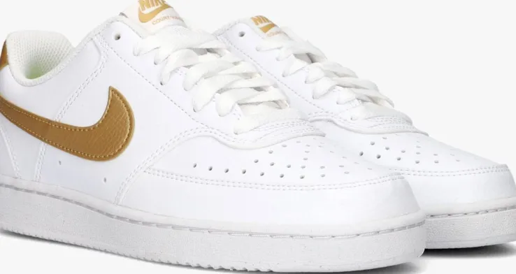 Deze witteNIKE COURT VISION LOW WMNS sneakeris niet alleen heel comfortabel, hij heeft ook nog een heel cool design doordat hij is geïnspireerd op basketbalschoenen uit de jaren 80. Deze lage sneaker is uitgevoerd in een gecombineerd bovenwerk van leer en lederlook en is voorzien vanaccenten, zoals degoudkleurige NIKE-swooshop de zijkant, hettextiel merklabel op de tong en hetreliëf merkopdruk op de hiel. De schoen is gevoerd met mesh en een vast voetbed en heeft ademende perforaties op de neus. De witte rubberen kuipzool zorgt voor extra duurzaamheid en grip door het sportieve profiel. Draag hem bij al je favoriete outfits en je bent ready to go!
