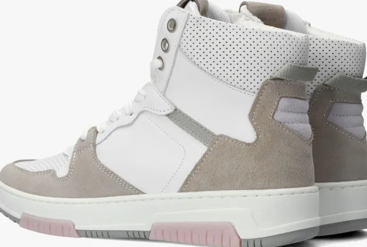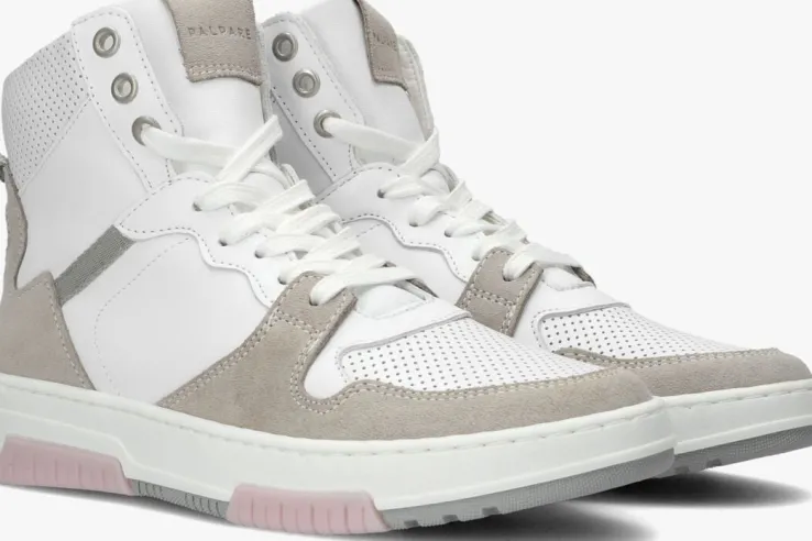 Het merkPALPA ontwerpt comfortabele schoenen van hoogwaardige materialen met een trendy design. Deze hoge sneaker MITCH combineert dan ook het beste van twee werelden: een prettige pasvorm en een hedendaagse look. De schoen heeft een bovenwerk van wit leer in combinatie met grijs en paars suède en opvallende perforaties aan de schacht en op de neus. De schoen heeft toffe retro accenten door de hoge schacht met brede instap, de grove perforaties en de kuipzool met lichtroze inzetstukken op de zoolrand. Een ander opvallend detail is het suède merklabel op de tong en het textiele aantreklusje achter op de hiel. Het binnenwerk is gevoerd metademend mesh en heeft een dempend en uitneembaar voetbed van leatherlook. De rubberen zool heeftstoere vormen en belijningen op de zoolrand die dit plaatje helemaal afmaakt. Door het gripvaste profiel loopt deze sneakerheel comfortabelenervaar je altijd een goede grip.Daarnaast is de zool heel flexibel en licht van gewicht en zorgt deze voor een goede afwikkeling van de voet. Superleuk bij die ene jeans of dat toffe jurkje!