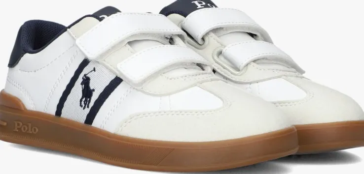 Stap stijlvol de wereld in met de HERITAGE COURT LLL EZ T-TOE sneakers van POLO RALPH LAUREN. Deze lage, witte sneakers met een leatherlook buitenkant zijn perfect voor jongens die houden van een sportieve en toch nette uitstraling. Opvallend zijn de donkerblauwe accenten en het beige suèdelook. Draag ze tijdens een potje voetbal met vrienden of een dagje uit in de stad. Combineer ze moeiteloos met een stoere jeans of een casual korte broek. De tijdloze witte kleur past bij elke outfit en zorgt voor een frisse, moderne look. Met deze sneakers aan je voeten ben je altijd klaar voor avontuur en plezier.