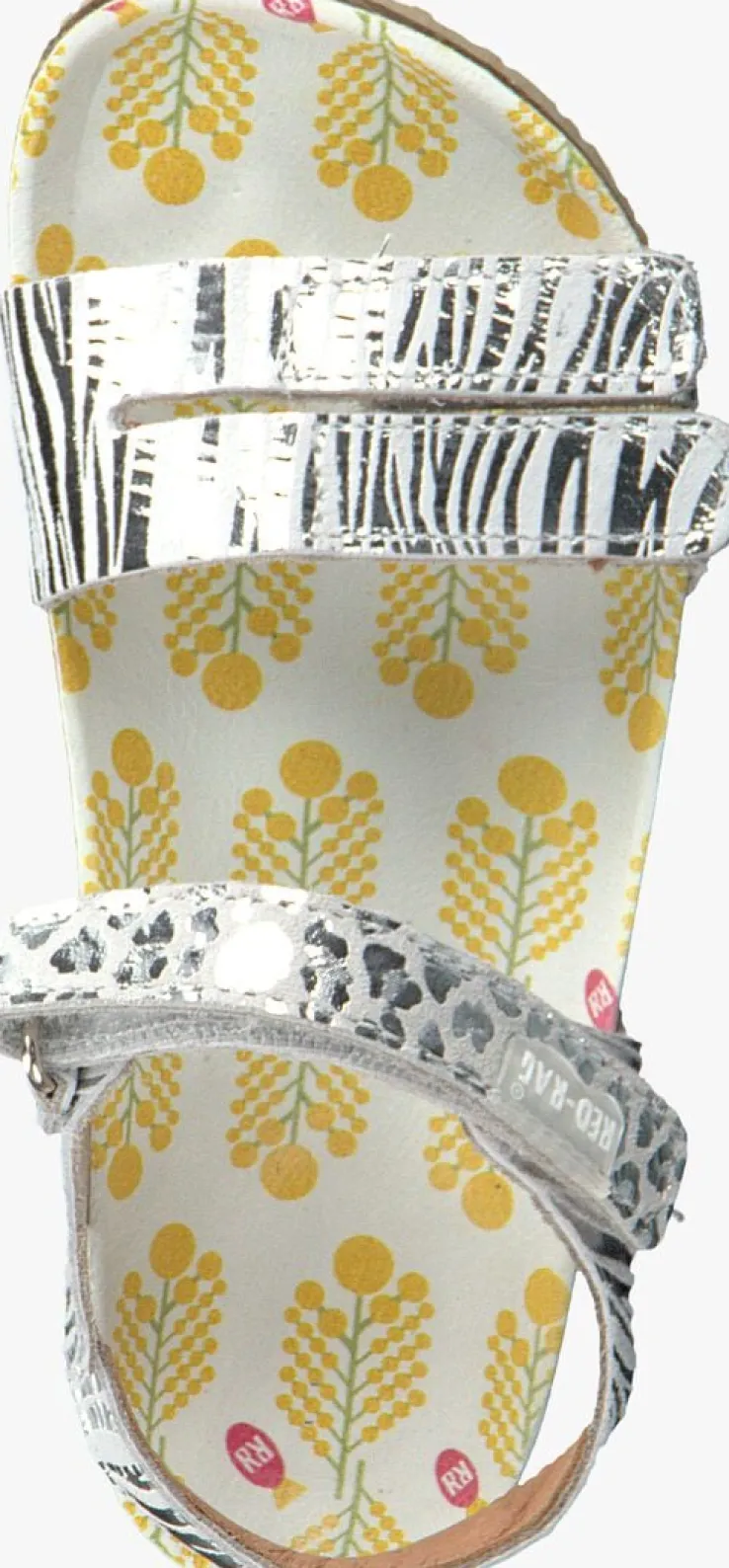 Schitter en straal met deze witte sandalen 19242 van het merk RED-RAG. Het sandaaltje is gemaakt van wit suède met een zilverkleurige metallic folie afwerking in zebra- en panterprint. De voering is gemaakt van suède en het voetbed heeft een leren toplaag. Je trekt ‘m gemakkelijk aan en uit dankzij de handige klittenbandsluiting. De kurken tussenzool zorgt voor een goede demping en de rubberen loopzool heeft een gripvast profiel.