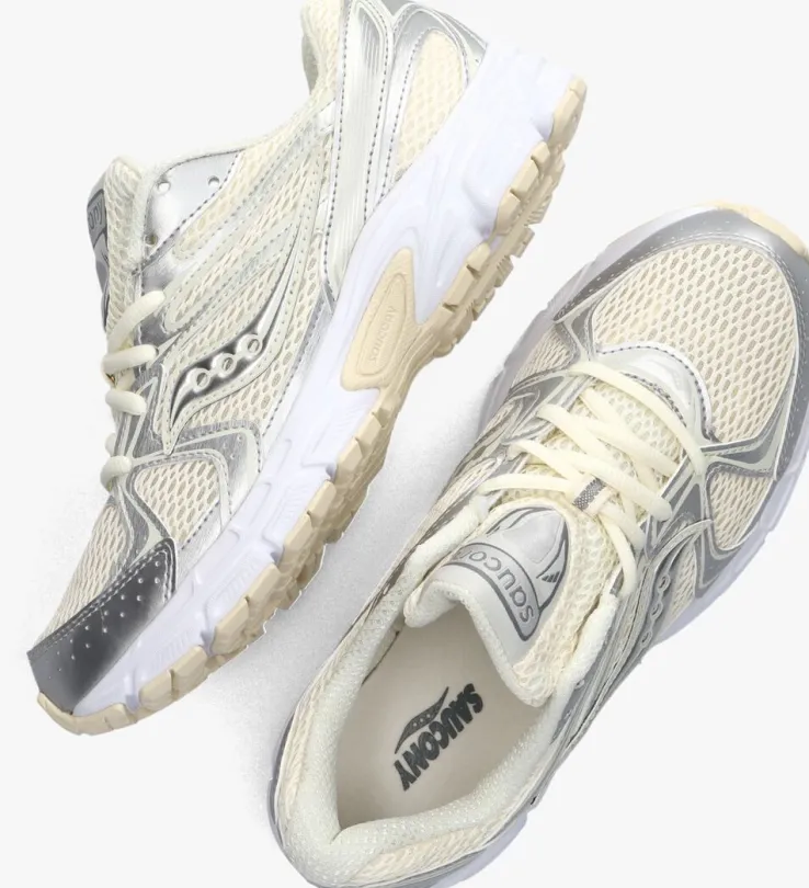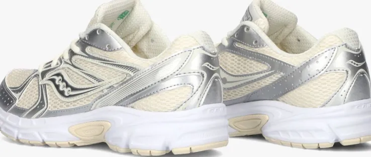 Stap in stijl met de Ride Millennium lage sneakers van Saucony. Deze witte pareltjes zijn perfect voor dames die op zoek zijn naar comfort en fashion in één. Deze sneaker is gemaakt van ecrukleurige mesh met zilverkleurige leatherlook panelen. De details van de schoen zijn: perforaties, textielen merkembleem op de tong en het merkreliëf bij de zoolrand. Draag de ze sneaker met zelf vertrouwen en shine! Want deze toffe sneakers hebben ook nog eens een comfortabel textiele binnenvoering met uitneembaar voetbed. De bewerkte witte rubberen zool heeft een ecru kleurige inzet en een grove loopzool voor extra grip. Met deze sneaker aan je voeten ben je klaar voor elke dagelijkse activiteit, of het nu een wandeling maakt in het park of een dagje gaat shoppen met vriendinnen. Combineer ze met een trendy jeans en een casual T-shirt voor een moeiteloze en eigentijdse look. Met de Ride Millennium sneakers van Saucony ben je altijd on-trend en klaar om te stralen.