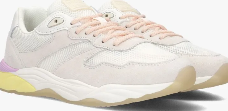 Dit heerlijke seizoen verdient een vrolijke sneaker! Ga voor deze witte sneaker CELEST 2.0 uit de collectie van het Amsterdamse couture-merkSCOTCH & SODA. De buitenkant is gemaakt van glanzend mesh met beige overlays van suède. Opvallend detail is het ronde rubberen merkembleem op de leren hielcap, het rubberen merklabel op de tong, de paarse hielstabilisator en de wit met roze veters.Het binnenwerk is gevoerd met meshtextiel en heeft een vast voetbed. De witte oplopende rubberen zool is voorzien van een gele inzet en de transparante loopzool heeft een gripvast profiel die een goede grip en stabiliteit biedt op iedere ondergrond.