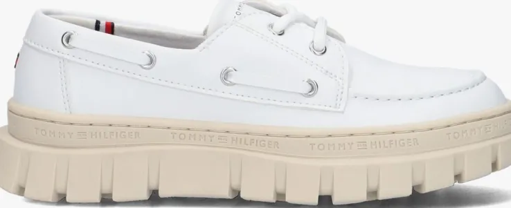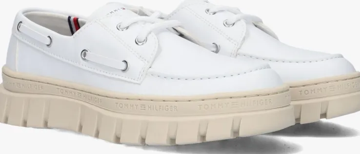 Deze lage sneaker 32896 met chunky zool is van het bekende merk Tommy Hilfiger. Dit toffe model is gemaakt van wit leatherlook en heeft gave details zoals de opstaande neusnaad, de metalen veterringetjes, het merkembleem op de tong, de kleine vetersluiting en het vlaglogo op de hiel. De voering is gemaakt van textiel en het voetbed is niet uitneembaar. De rubberen zool met merkreliëf is onder de hiel ruim 3,5 centimeter hoog en je hebt voldoende grip dankzij de diepe groeven in de loopzool. Waar combineer jij ‘m mee?