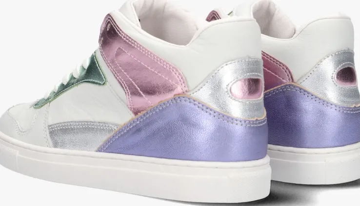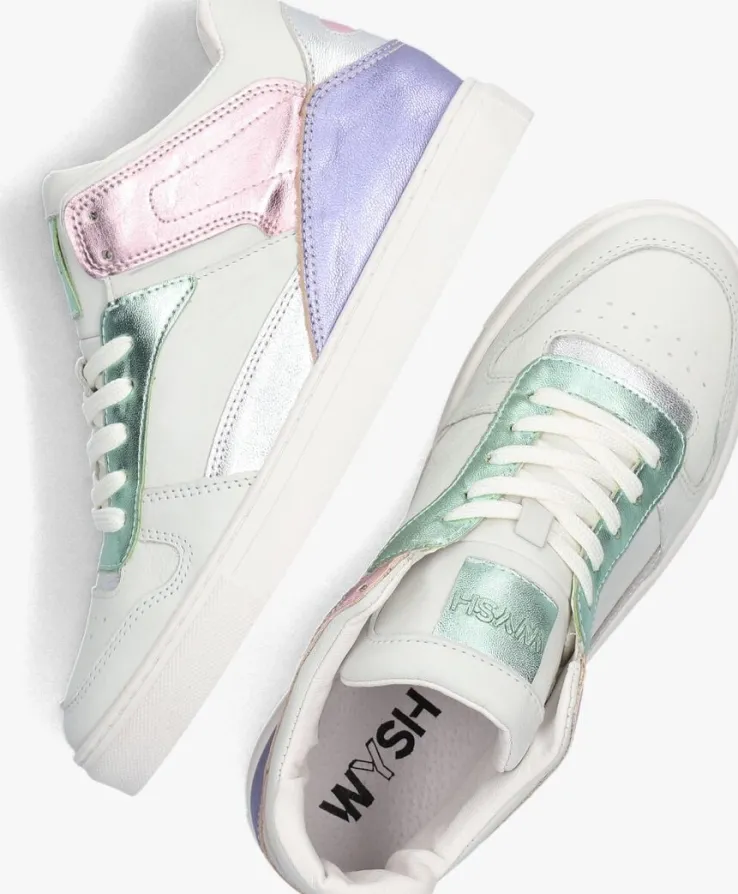 Hétnieuweschoenenmerkvoor coole kids, WYSH, staat voorWearYourSHoesen is vooreigenwijze types diehuneigenstijl volgen.Oftewel, doe je ding! Draagopieder momentde schoenen die jij wil,opiederemanierdiejijtofvindt.De trendy modellen zijn uitgevoerd in hoogwaardige materialen en zijn met zorg ontworpen voor snel groeiende voeten. Dit hoge sneaker model LMILENA is uitgevoerd in wit leer met metallic panelen in de kleuren groen, roze, paars en zilver. Het binnenwerk heeft een leatherlook voering met een uitneembaar, leren voetbed. Op de tong is een groot merklabel met reliëf merkopdruk te vinden en de voorvoet is gesierd met perforaties. De rubberen zool zorgt voor een stoere look en heeft een stevige grip. Durf eigenwijs te zijn met WYSH!