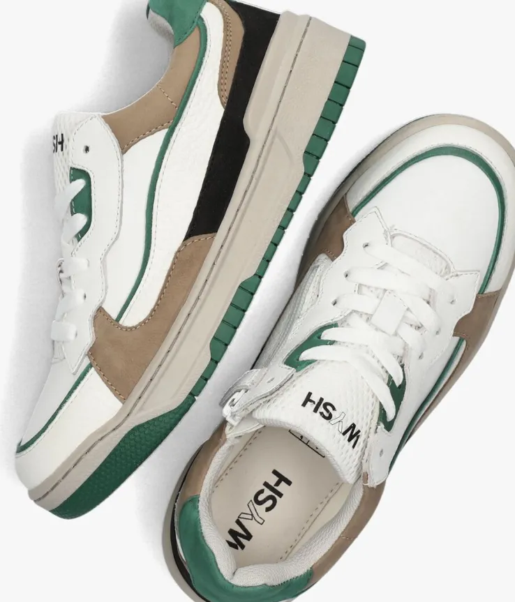 Met de AUBREY lage sneakers van WYSH ben jij helemaal on-trend! Aan de buitenkant gemaakt van wit leer met panelen van groen, bruin en zwart suède. Opvallend detail is het merkreliëf op de tong. De binnenkant is gevoerd en heeft een uitneembaar voetbed. De veters hoef je maar één keer te strikken want je trekt ze gemakkelijk aan dankzij de ritssluiting. De groene en grijze rubberen zool heeft een gripvast profiel en zorgt voor een goede grip en stabiliteit. Draag ze naar school of tijdens een dagje uit met vrienden. Combineer de sneakers met een stoere jeans en een basic t-shirt voor een relaxte outfit. Of ga voor een sportieve look met een trainingsbroek en een hoodie. Met deze sneakers maak jij altijd een goede indruk!