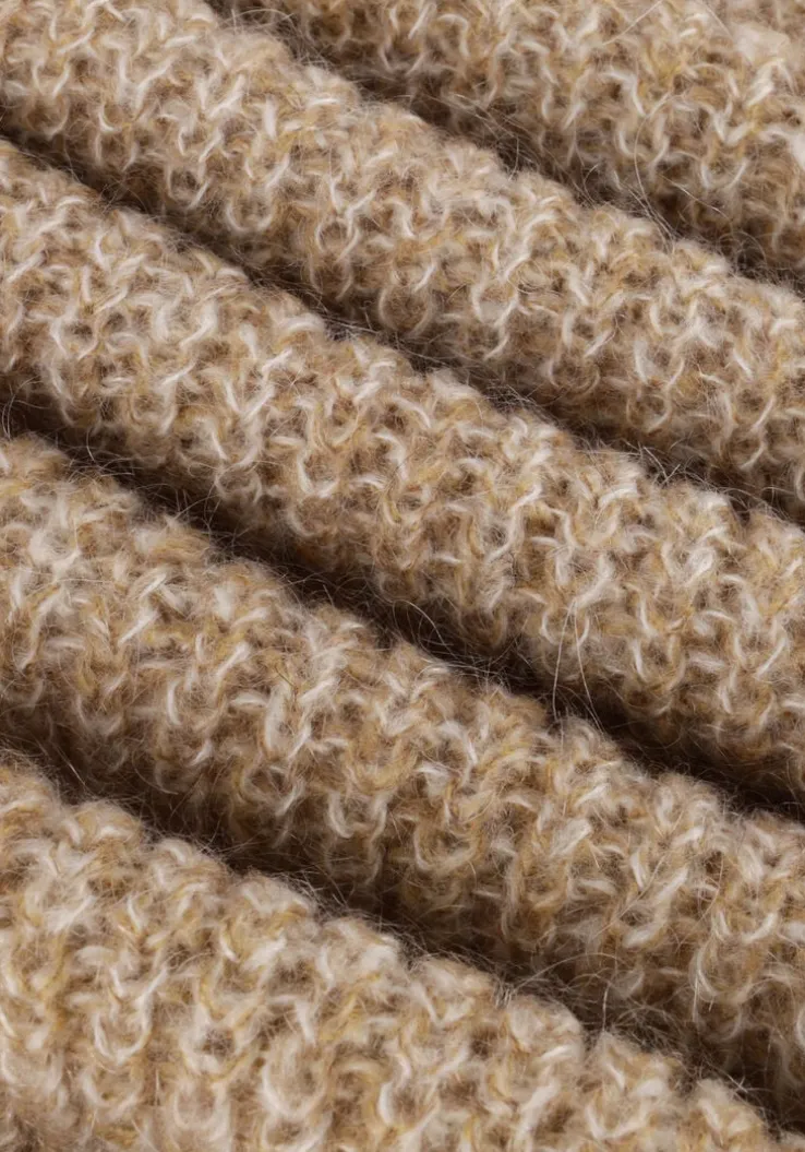 Deze SWEATER MELANGE MOHAIR BLEND KNIT van SUMMUM is een must-have voor dames die op zoek zijn naar stijl en comfort. De zandkleurige trui is gemaakt van een zachte mohair blend, waardoor hij heerlijk warm en knuffelbaar is. Draag deze trui tijdens een ontspannen wandeling in het park of tijdens een gezellige avond met vrienden. Combineer hem met een stoere jeans en sneakers voor een casual look, of met een rok en enkellaarsjes voor een meer vrouwelijke uitstraling. Met deze trui ben je altijd trendy en klaar voor elke gelegenheid.