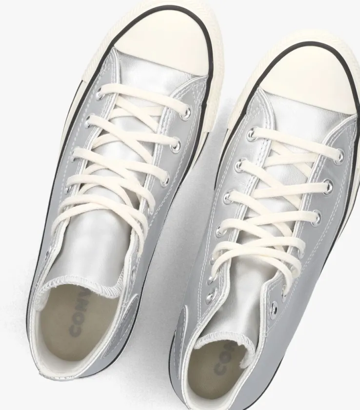 De CHUCK TAYLOR ALL STAR HIis de meest iconische hogesneaker van het merk ConverseAll Star! Deze zilverkleurige klassieker is perfect om jouw persoonlijke stijl mee te laten zien en is eindeloos te combineren bij al jouw zomerse outfits. De rubberen neus en stootrand geven deze schoen de kenmerkende Converse-look. Extra leuk zijn destrepen in de zoolrand en de merklabels op de enkel en de hiel. De schoen is uitgevoerd in leatherlook met een canvas voering, een vast voetbed en een rubberen zool met grof profiel.