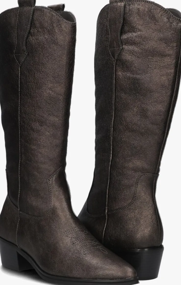 Stap in stijl met de CASSIE-03 cowboylaarzen van NOTRE-V. Deze bruine cowboylaarzen met zilveren glans, zijn echte pareltjes voor dames die willen stralen. Deze prachtige laarzen hebben een comfortabele binnen voering, van zacht textiel en leer. Door zijn puntige neus en speelse stiksel geeft het de laars een stoere look. De cowboy laars heeft een stevige blokhak van 5 centimeter waar je moeiteloos op rondloopt. De laarzen zijn gemakkelijk aan te doen met de aantreklussen. Combineer ze met een stoere spijkerbroek en een oversized blouse voor een trendy look. Of draag ze onder een zwierige jurk voor een vrouwelijke touch. Met de cowboylaarzen ben je altijd on-trend en klaar voor elke gelegenheid. Laat jezelf zien en laat je voeten spreken!