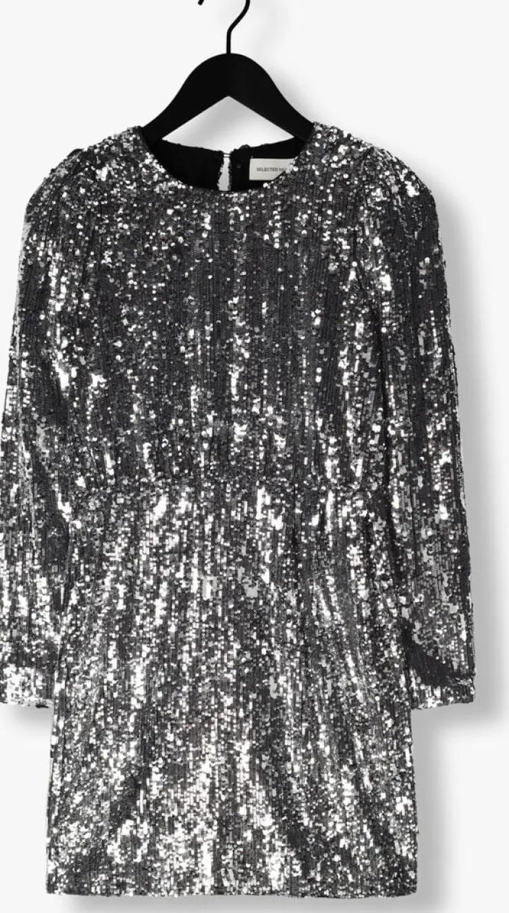 Stralend de nacht in met de SLFARI-COLYN LS SHORT SEQUINS mini jurk van SELECTED FEMME. Deze zilverkleurige partyjurk is perfect voor een avondje uit of een bruisend feestje. De glinsterende pailletten op de polyester buitenkant zorgen ervoor dat je de ster van de avond bent. Combineer met een paar elegante hakken en een stijlvolle clutch voor een complete look. Of draag ‘m met een leren jasje voor een stoere twist. Deze jurk is een must-have voor dames die houden van een beetje glamour en graag in de spotlight staan. Laat je innerlijke diva stralen!