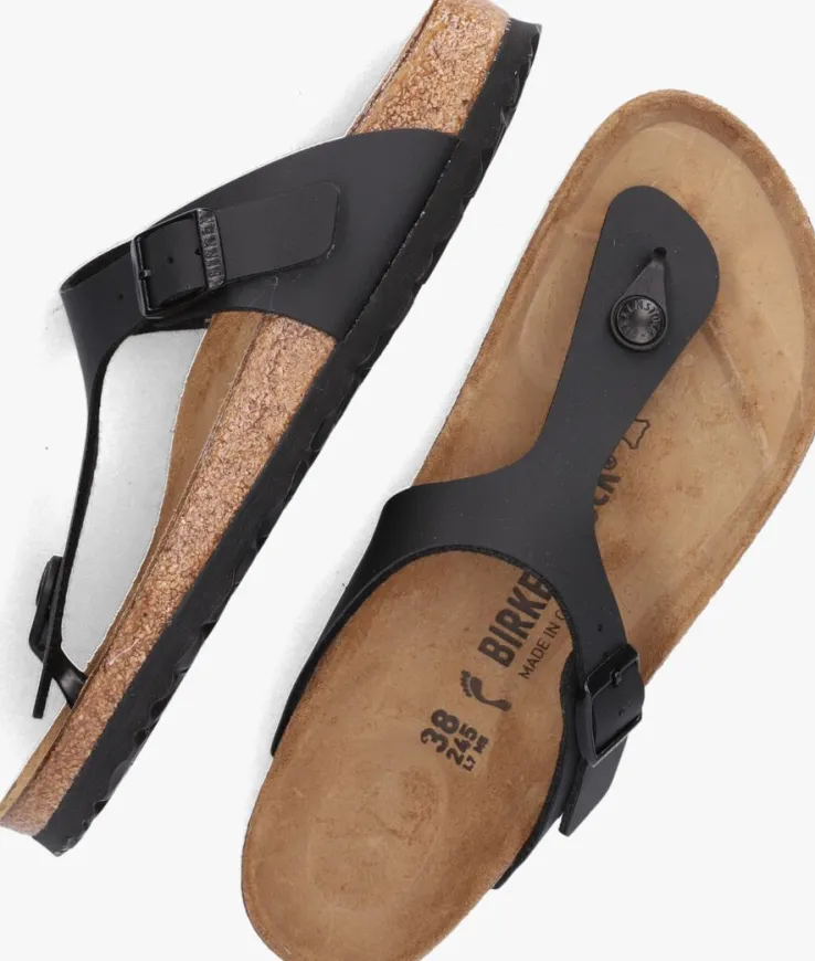 Deze zwarte GIZEH KIDS slipper is de populaireklassieker van het merk Birkenstock en is speciaal aan kindervoeten aangepast. Deze outdoor slipper is uitgevoerd in huidvriendelijk, sterk en slijtvast lederlook met een textiel binnenwerk en een superzacht suède voetbed. Het voetbed is van anatomisch gevormd kurk-latex en zorgt voor een fijn draagcomfort omdat het zich bij het dragen naar de voet gaat vormen. De metalen gespheeft een merkopdruk en is verstelbaar voor iedere voet. De rubberen zool heeft een grof profiel met merkopdrukken voor een goede grip.