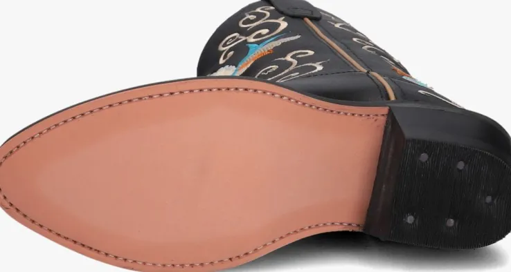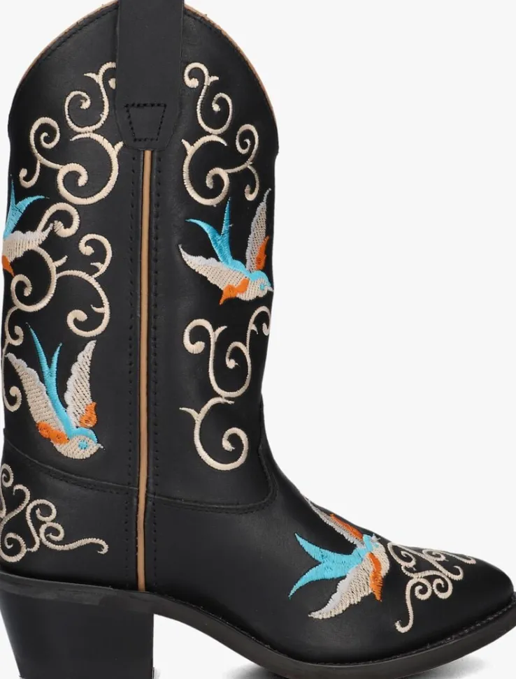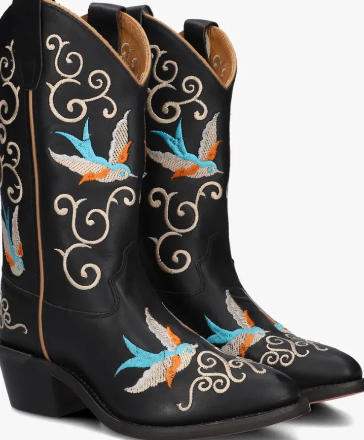 Stap stijlvol de wereld in met de zwarte cowboylaarzen THE ROBIN ANNELIJN van BOOTSTOCK. Deze laarzen, gemaakt van hoogwaardig leer, hebben een puntige neus en een schachthoogte van 24 cm. De cowboy laars heeft een bovenwerk van zwart leer met opvallende gekleurde handgemaakte vogelprint. Trek de schoen aan met de handige aantreklussen en stap in een binnenkant van leer, wat zorgt voor ultiem comfort. De gelaagde blokhak van 5 cm en een stevige rubberen zool, zijn ze perfect voor een dagje shoppen of een middagje paardrijden. Combineer ze met een stoere jeans of een zwierige rok voor een trendy look. Deze laarzen zijn een must-have voor elke stijlvolle dame!