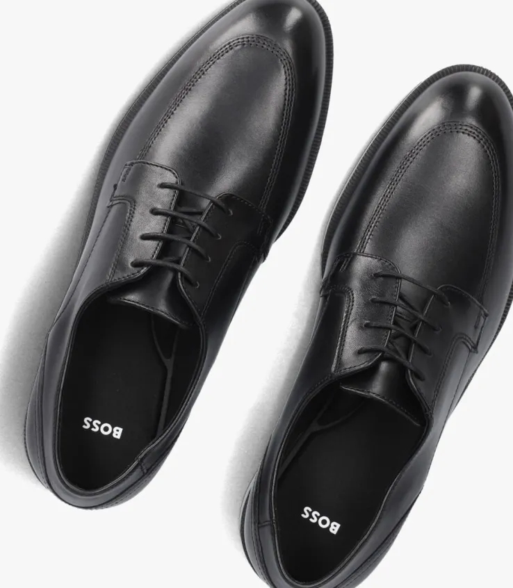 Stap stijlvol de herfst en winter in met de TAYIL_DERB nette schoenen voor heren. Deze zwarte pareltjes van BOSS zijn perfect voor een zakelijke meeting of een chique diner. De buitenkant is vervaardigd van soepel leer, terwijl de binnenkant je voeten comfortabel omhult. Combineer ze moeiteloos met een wollen pantalon en een stijlvolle coltrui voor een verfijnde look. Of je nu door de stad wandelt of een belangrijke presentatie geeft, deze schoenen bieden de perfecte mix van comfort en klasse. Laat je voeten genieten van de perfecte pasvorm en maak indruk met je elegante uitstraling.