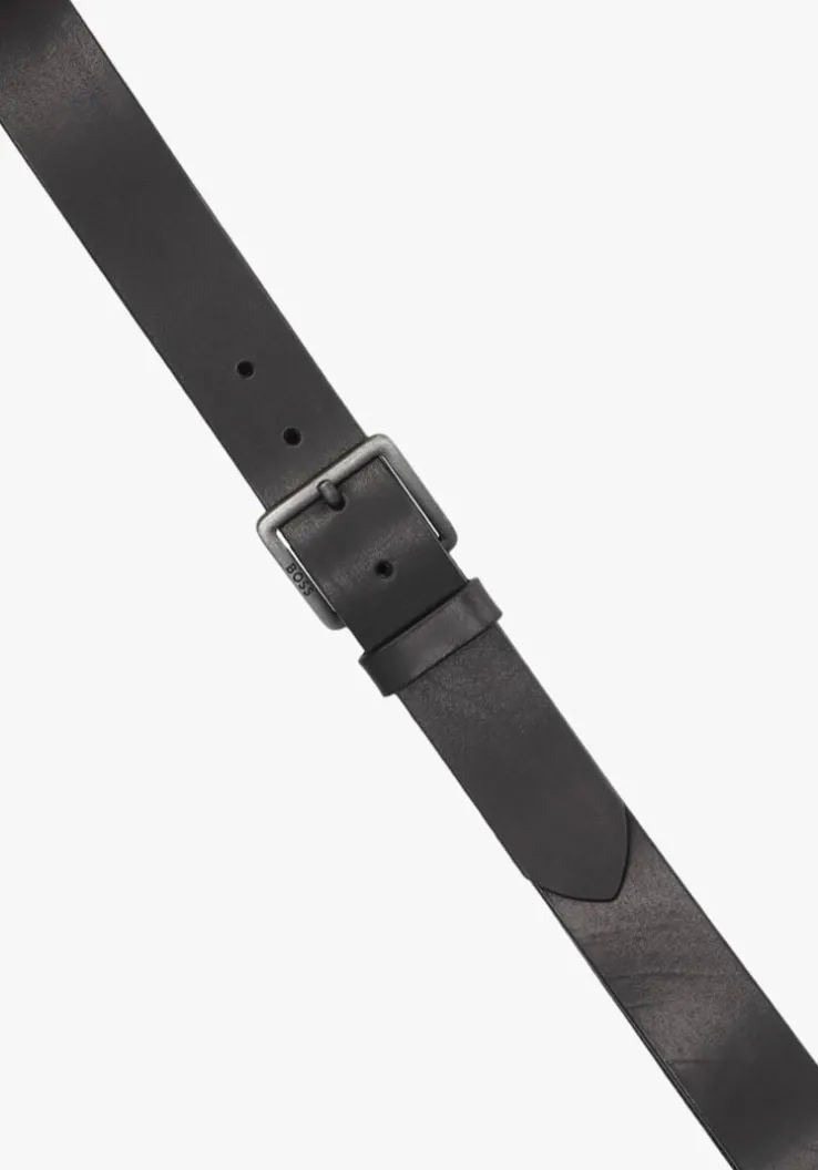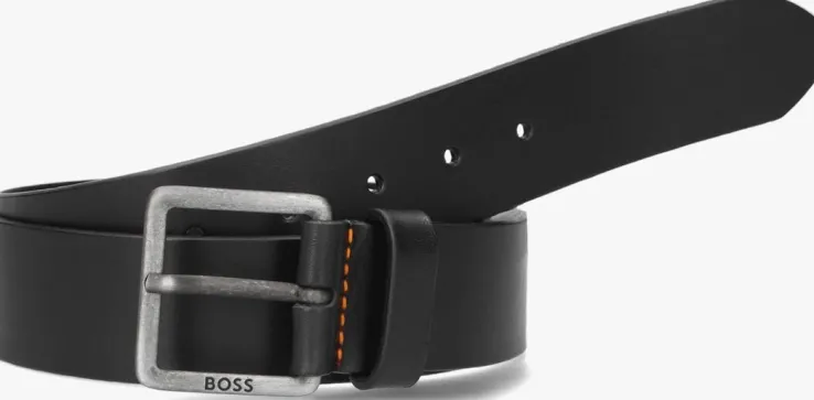 Deze zwarte riem JEEKO 10207238 01 van het merk BOSS is gemaakt van 100% leer en heeft een metalen gespsluiting met merkreliëf en oranje stiksels. De breedte van de riem is 4 centimeter en je kunt ‘m bij talloze outfits combineren. Ook erg leuk om cadeau te geven!