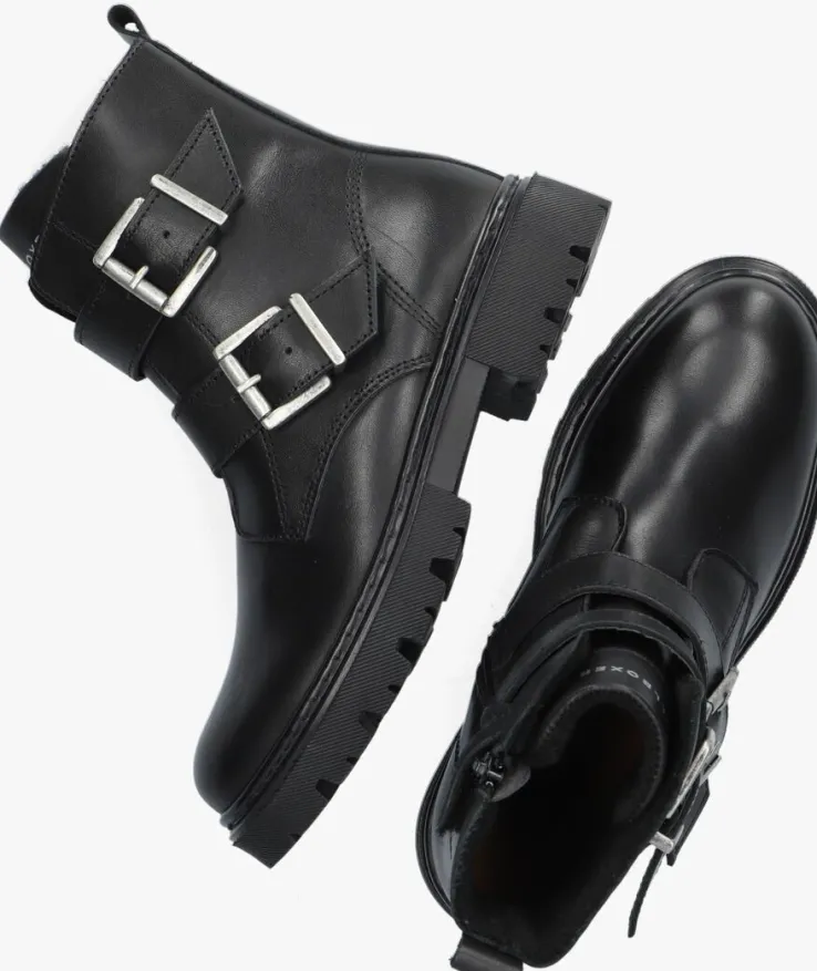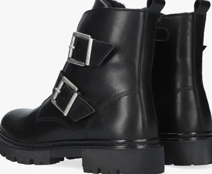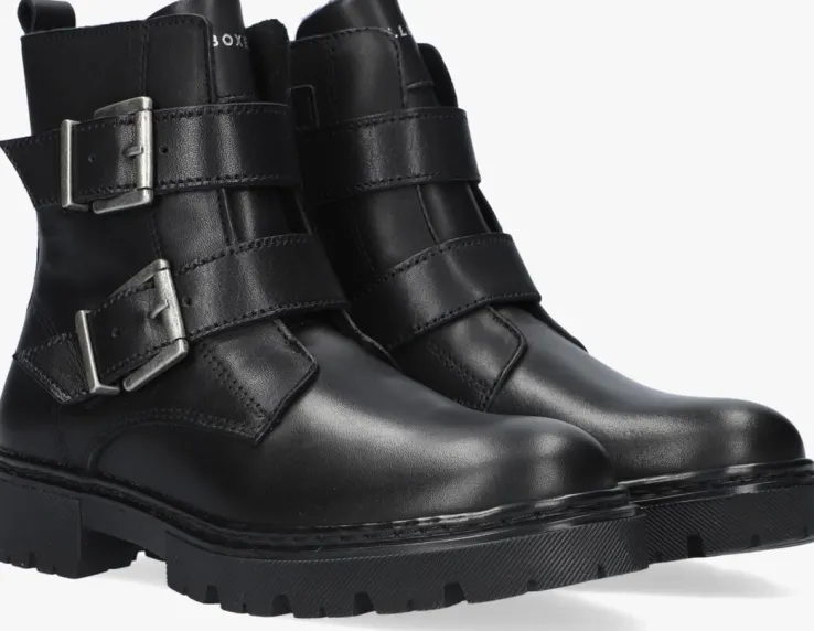 Stoer en girly tegelijk, dat is deze té leuke bikerboot AJS501 van het merk BULLBOXER. De buitenkant heeft een opvallende look door het bovenwerk van zwart leer met een mooie glans. Verder heeft de laars nog meer leuke details zoals de dubbele leren bandjes met gespsluiting over de wreef, het merkopdrukje op de tong, en de leren aantreklus achter op de schacht. Aan en uittrekken wordt kinderspel door de handige ritssluiting aan de binnenkant van de laars en met de gespjes kun je hem gemakkelijk passend maken. Het binnenwerk is gevoerd met zacht textiel die de voetjes goed warm houden tijdens koude winterdagen. De laars heeft een uitneembaar voetbed en een loopzool met diepe groeven die er niet alleen heel stoer uit ziet, maar ook zorgt voor veel grip tijdens het buitenspelen. Ga op avontuur met deze te gekke bikerboots.